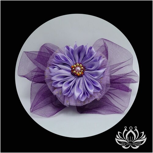 Цветок Канзаши на волосы Ваши. Резинка для волос "Крокус" сиреневый ручная работа.