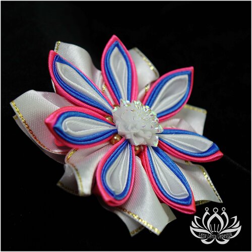 Цветок Канзаши на волосы Ваши. Заколка для волос "Белянка" белый, ручная работа