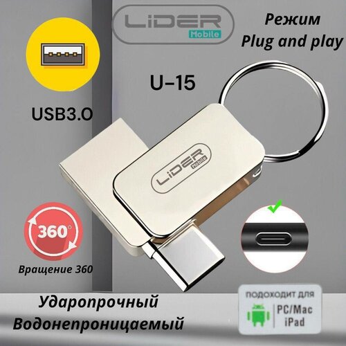 Высокоскоростной флэш-накопитель 128GB / Type-C - USB 3.0 / ударопрочный, водонепроницаемый, металлический
