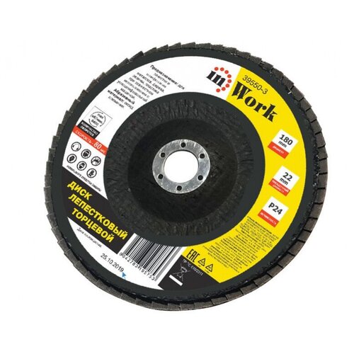 IN WORK 39553-3 Круг лепестковый торцевой 180х22мм P60 IN WORK