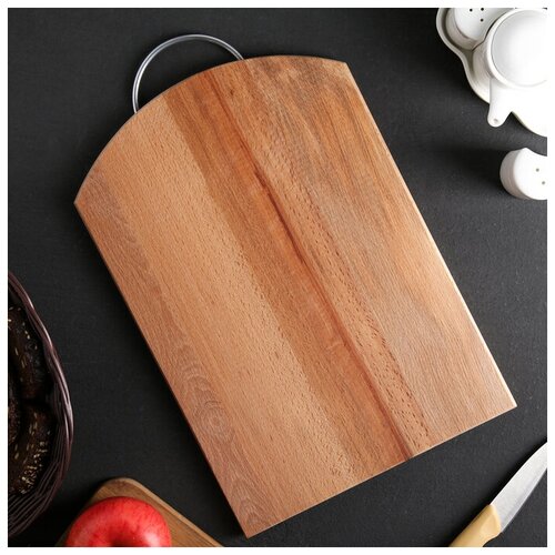 Доскa рaзделочнaя Премиум «Полубочкa», с метaллической ручкой, 35×24,5×1,8 см, бук