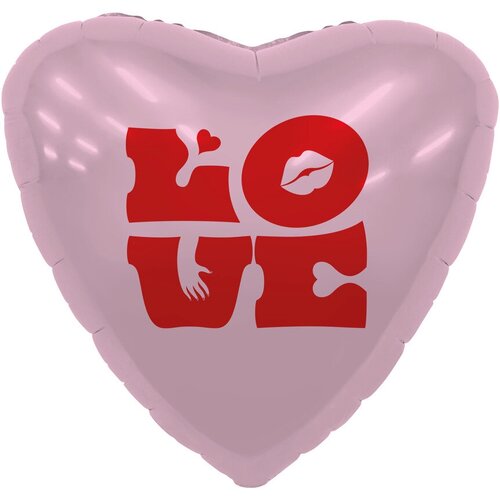 Шар (19'/48 см) Сердце, LOVE, Розовый, 1 шт.