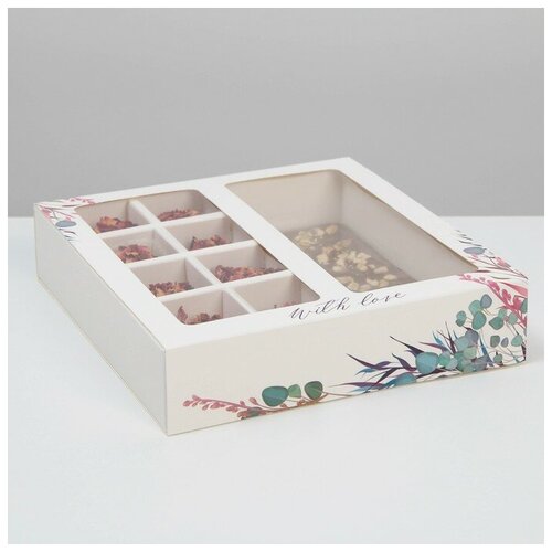 Коробка под 8 конфет и шоколад с ячейками With Love 18 х 18 х 4 см