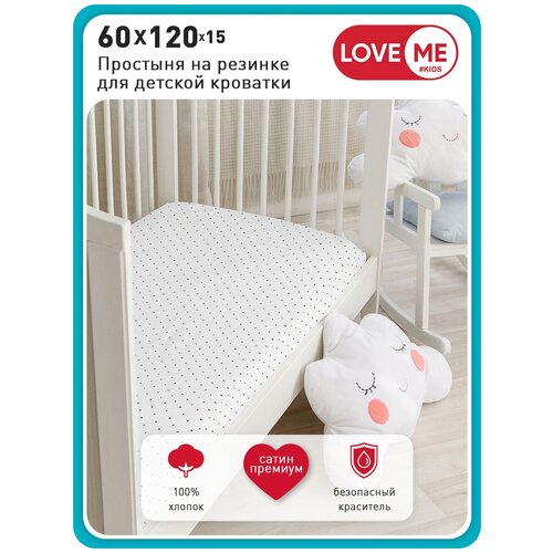Простыня на резинке в кроватку LOVEME Brown dots 60х120 см, сатин-люкс, цвет белый