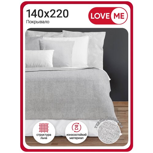 Покрывало на кровать и диван LOVEME Рогожка, 140х220 см, цвет серый (пепельно-серый)