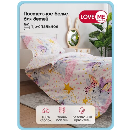 Комплект постельного белья LOVEME Magic dance 1,5СП, наволочка 50х70см, поплин, 100% хлопок