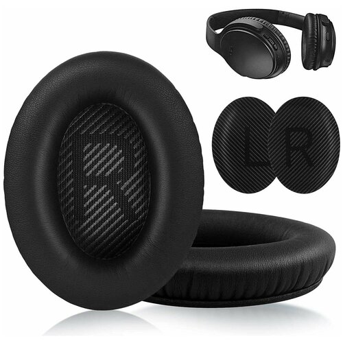 Амбушюры для наушников BOSE QuietComfort 35 и QuietComfort 35 II, QC35, QC45 (кожа) чёрный