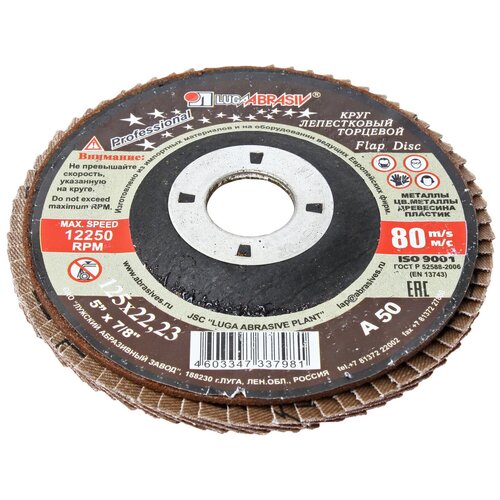 Круг лепестковый торцевой Луга Абразив 125х22 20H (Р80) PROFESSIONAL, 5 шт.