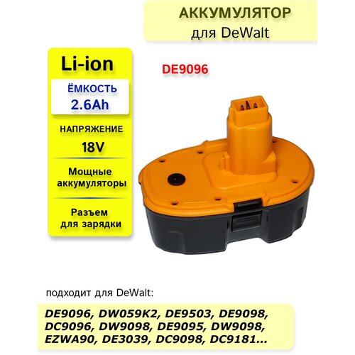 Аккумулятор для DeWalt DE9096 DE9503 DE9098 DC9096 DW9095 DE9095 DW9098 18V 2.6Ah Li-Ion