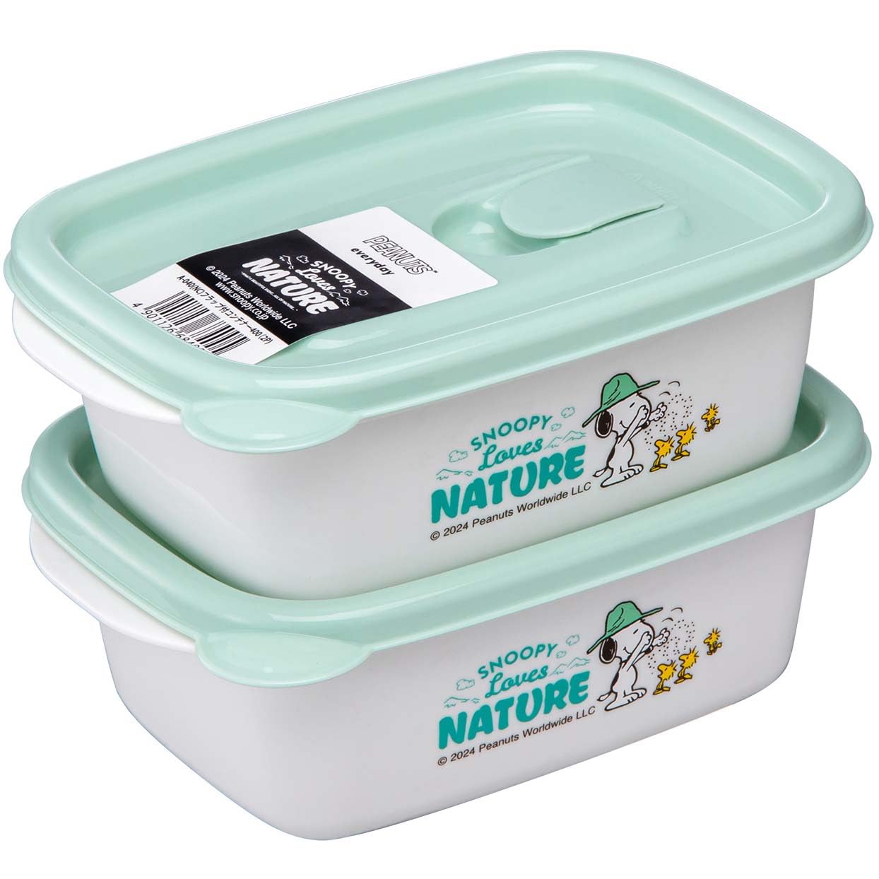 Iwasaki Industries Snoopy Storage Container with 400ml Made in NC Flap, Microwave-Safe, Capacity, 2-Piece Set, Japan, A-040