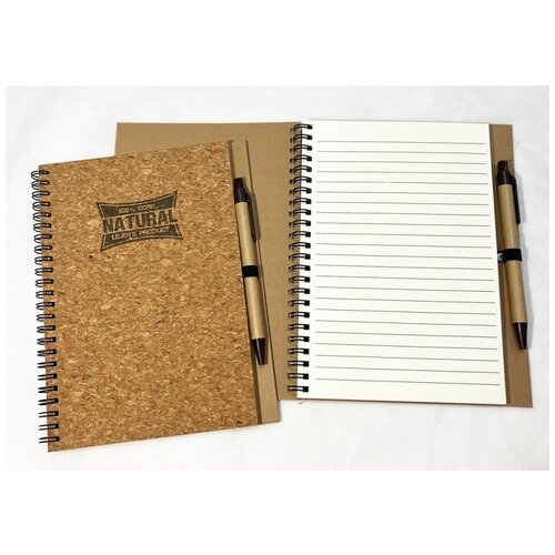 Блокнот А5 на спирали в обложке из натуральной пробки c ручкой, Lejoys, экологичный, стильный