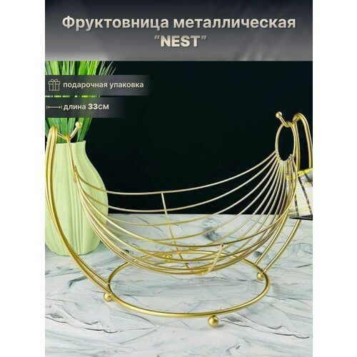 Фруктовница. Lenardi. Коллекция "Nest", золотая. Металл. Подарочная упаковка. Высота 23 см.