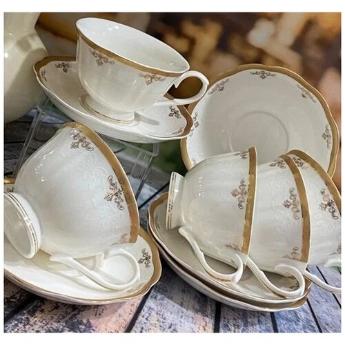 Чайный набор, Чайная пара, Чашка с блюдцем. Lenardi. "Винтаж". 12 предметов на 6 персон. Твердый фарфор. Подарочная упаковка.