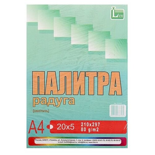 Licht Бумага цветная А4, 100 листов Палитра колор Интенсив, 5 цветов, 80 г/м²