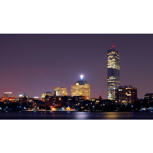 Картина на холсте 33x50 LinxOne "Boston, usa, city, lights" интерьер для дома / декор на стену / дизайн