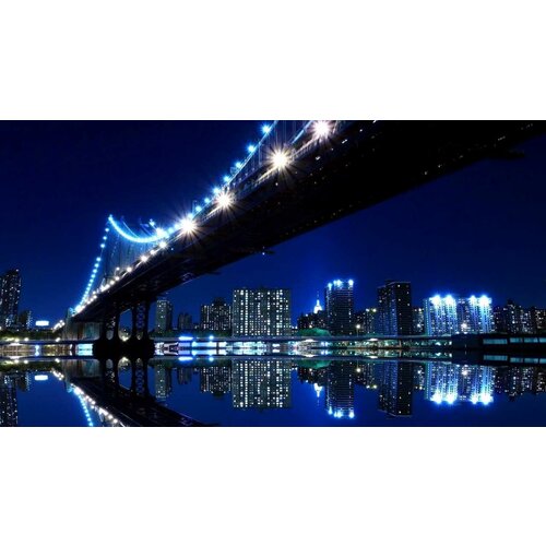 Постер на экокоже 60x90 LinxOne "City lights, night bridge" интерьер для дома / декор на стену / дизайн