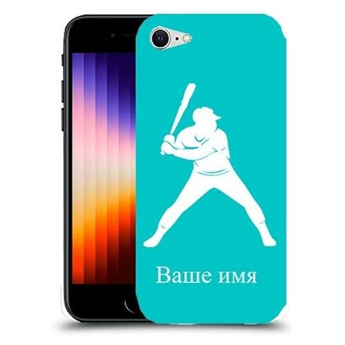 чехол для Apple iPhone SE (2022) с дизайном и вашим именем бейсболист цвет Черный