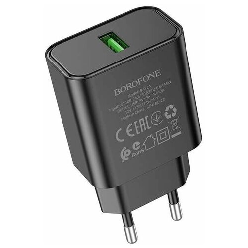 Borofone (6974443388541) Ba72a Spring 1USB QC3.0 (черный)