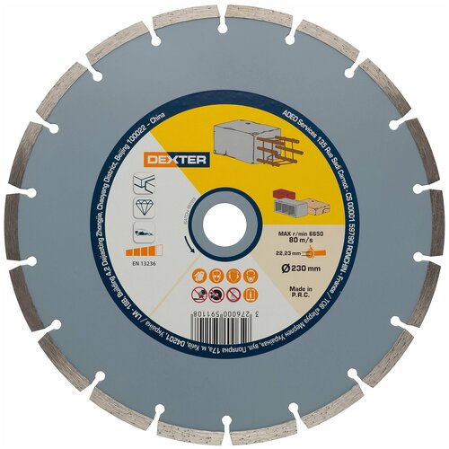 Диск алмазный по бетону Dexter сегментный 230х2.8 мм