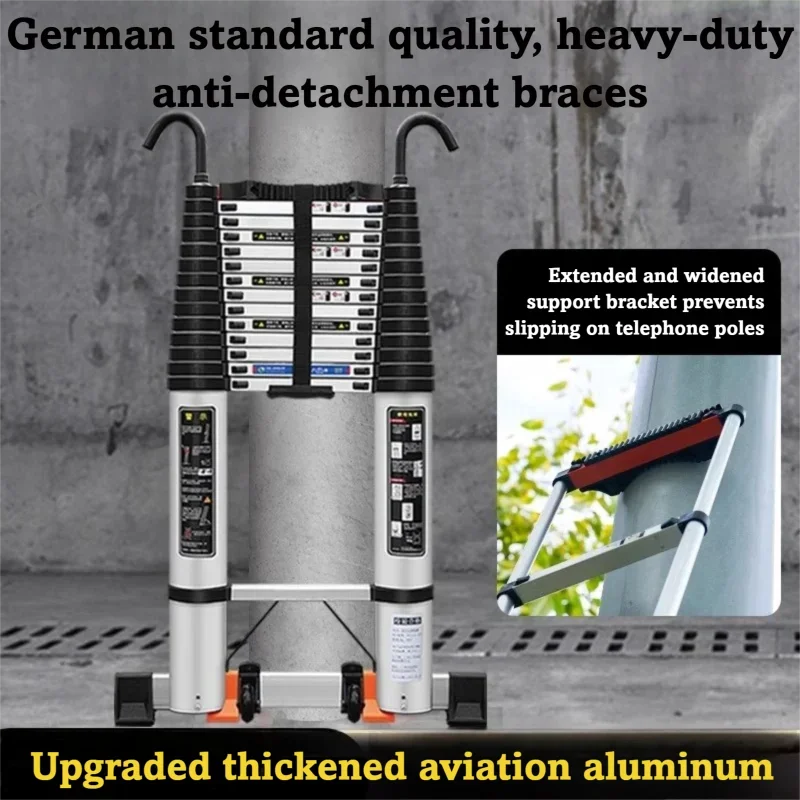 Compact Telescopic Straight Ladder Quick Retraction Design For Loft And Household Use