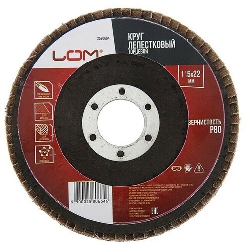 Круг лепестковый торцевой LOM, 115 х 22 мм, Р80
