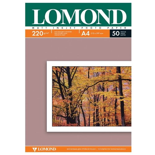 Бумага для струйных принтеров Lomond, 220 г/м, 50 листов, матовая, двухсторонняя, А4