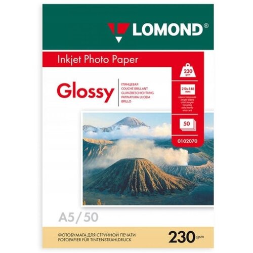 Бумага для струйных принтеров Lomond, 230 г/м, 50 листов, глянцевая, односторонняя, А5