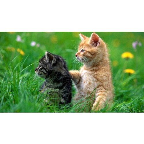 Постер на экокоже 30x40 LinxOne "Grass lovely Kitty cat White" интерьер для дома / декор на стену / дизайн