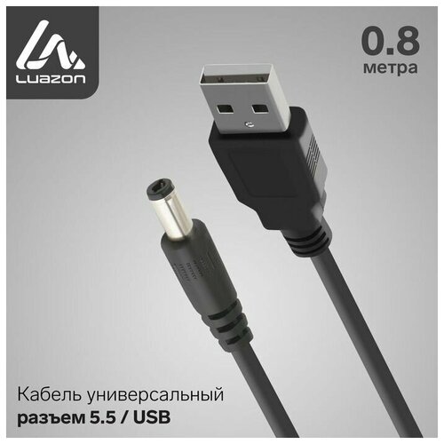 Кабель универсальный LuazON, разъем 5.5 - USB, 0,8 м, чёрный