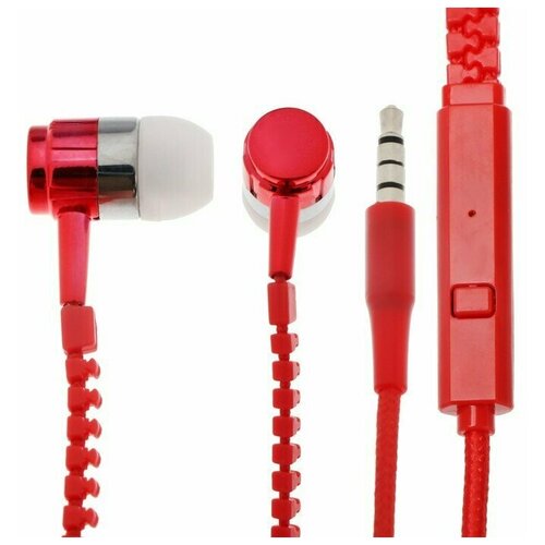 Наушники LuazON VBT 1.10 Молния, вакуумные, микрофон, красные