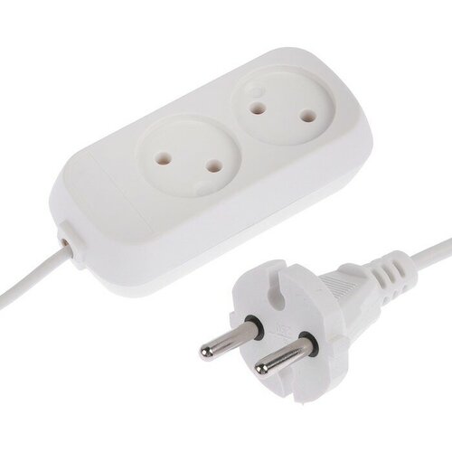 Удлинитель 2 розетки, 5 м, 6 А, ПВС 2х0.75 мм2, без з/к, белый