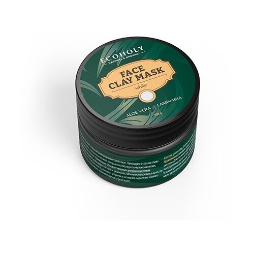 Глина для лица, глина белая с ламинарией и экстрактом гуараны, маска для лица