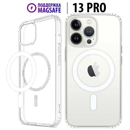 Чехол противоударный для iPhone 13 Pro с поддержкой MagSafe - прозрачный кейс для телефона с усиленными углами