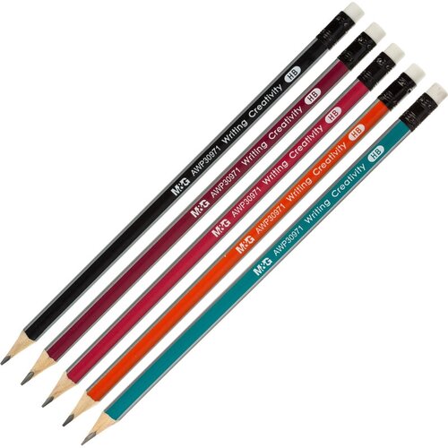 Карандаш чернографитный M&G HB дерев, заточ, трехгр, с ласт, в асс AWP30971, 12 шт.