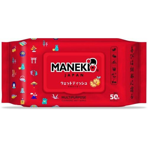 Maneki Red Салфетки влажные очищающие универсальные с ароматом цитрусового микса 50 шт