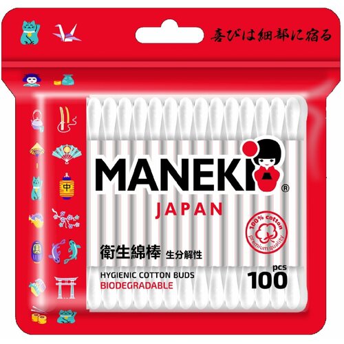 Maneki Red Ватные палочки гигиенические 100 шт в zip-пакете