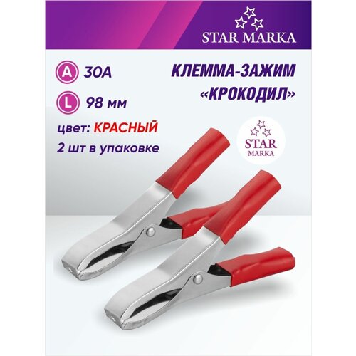 Клемма-зажим «крокодил» 10см 30А 2шт цвет красный