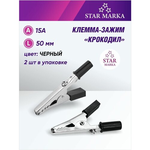 Клемма-зажим «крокодил» 5см 15А 2шт цвет черный