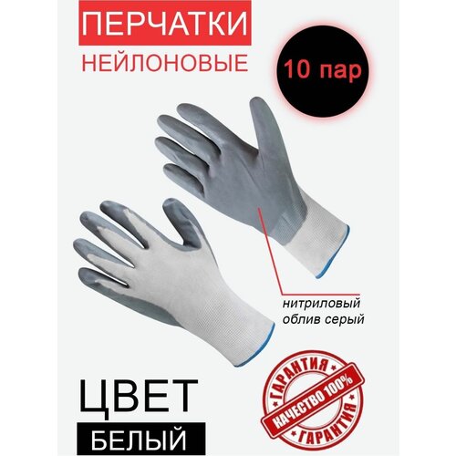 Рабочие перчатки нейлоновые с нитриловым покрытием 10 пар