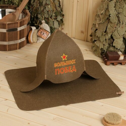 Набор для бани: шапка и коврик Хозяинъ зеленый
