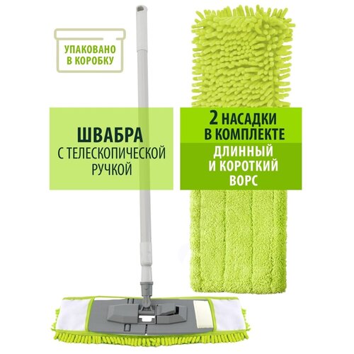 Швабра для пола с телескопической ручкой от 70 до 120см, с 2 съёмными насадками из микрофибры, короб