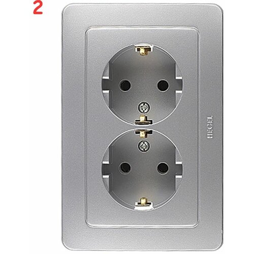 Розетка с рамкой Master РС16-351-06 двойная скрытая установка серебро с заземлением (2 шт.)