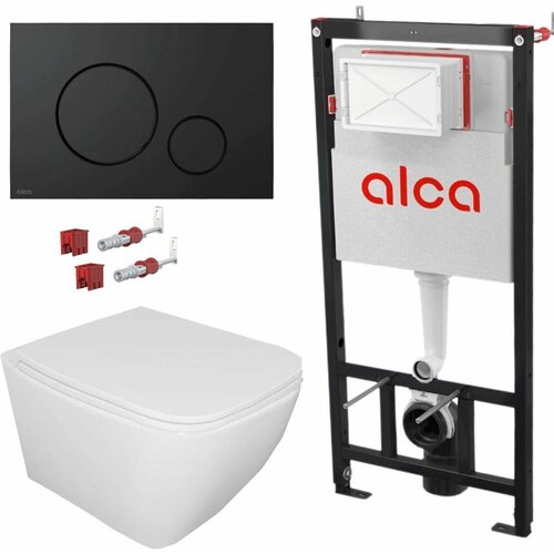 Готовый набор для унитаза: инсталляция Alcaplast 3 в 1 AM101/1120 с черной панелью смыва+унитаз подвесной Bahenberg Melle B20-08