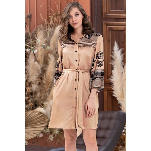 Халат MIA-AMORE укороченный, укороченный рукав, размер 46, бежевый