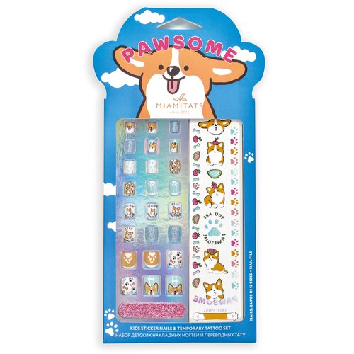 MIAMITATS Набор детский накладные ногти с переводными татуировками Pawesome