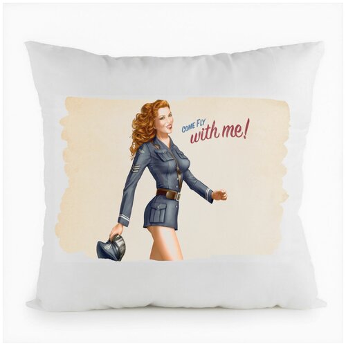 Подушка белая CoolPodarok battlestations midway Пин Ап Девушка Лётчик