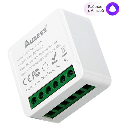 Умное Zigbee реле Mini Smart Switch Tuya Aubess 16A - работает с Яндекс Алисой