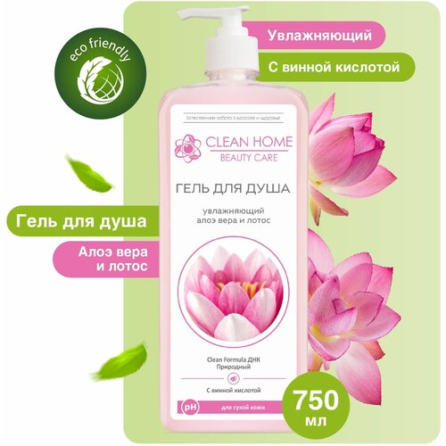 Гель для душа увлажняющий Clean Home Beauty Care для сухой кожи Алоэ Вера и Лотос с дозатором 750 мл