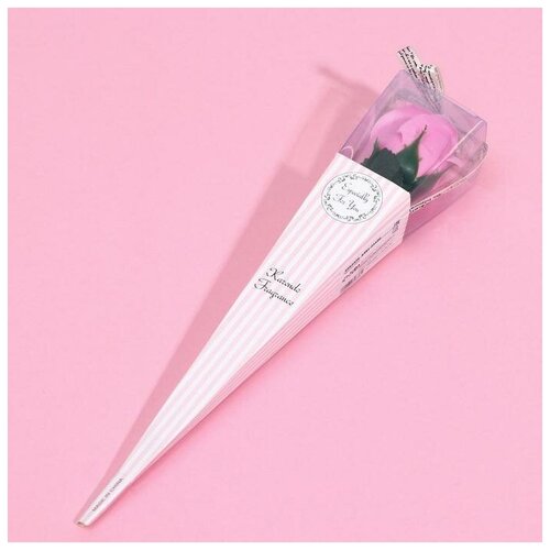 Мыльная роза, розовая на стебле в картоне, 1 шт.