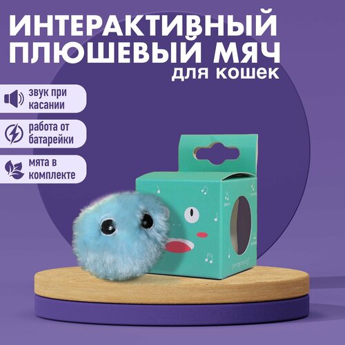 Плюшевый мячик для кошек с мятой, интерактивная игрушка со звуком Лягушки Голубой